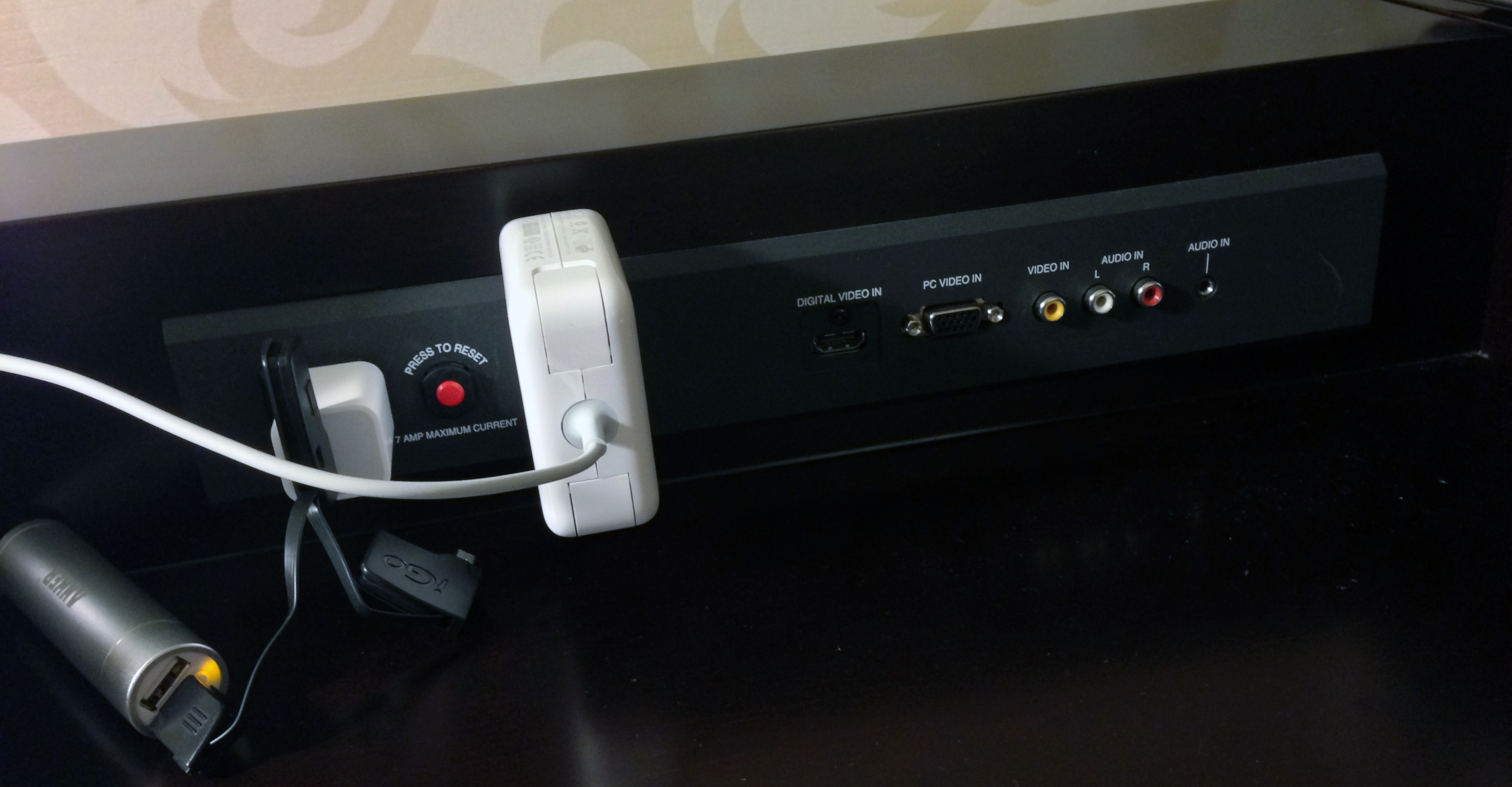 PortsChecked into a new hotel, and for a second I thought that this might have the perfect setup for me to plug in my laptop, phone, and iPad into the hotel television. The desk had ports for HDMI, VGA, RCA and audio. However, attempting to actually getting this to work was futile…