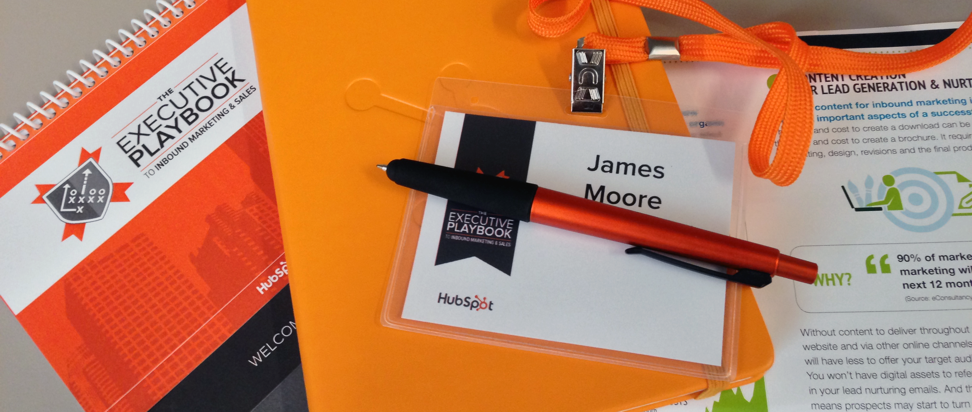 HubSpot SwagI spent this morning at HubSpot’s Executive Playbook, a presentation in four parts focussing on inbound marketing and sales. I was pretty impressed by how polished and prepared the organizers were – all the common mistakes I see at presentations were not in evidence. Registration was handled well, WiFi details were prominently printed in the handouts, the quality of materials was impressive, sessions started and ended on time, sound worked perfectly, etc. I enjoyed the what I saw and heard.